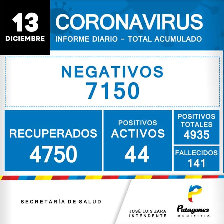 De acuerdo a la actualización de datos de la Secretaría de Salud de Patagones, este fin de semana no se registraron nuevos casos positivos de COVID.
