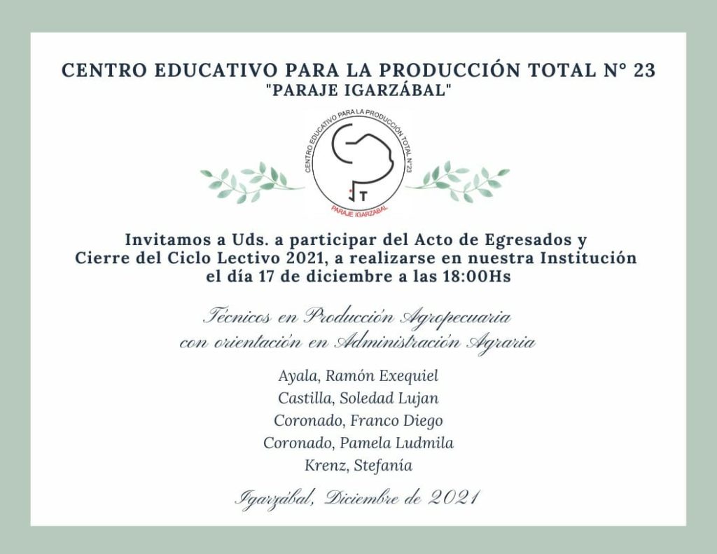 Se realizo El Acto de fin de Ciclo y Egresados en “ParajeIgarzàbal, que com mucha emoción despide a los 5 egresados de este año.