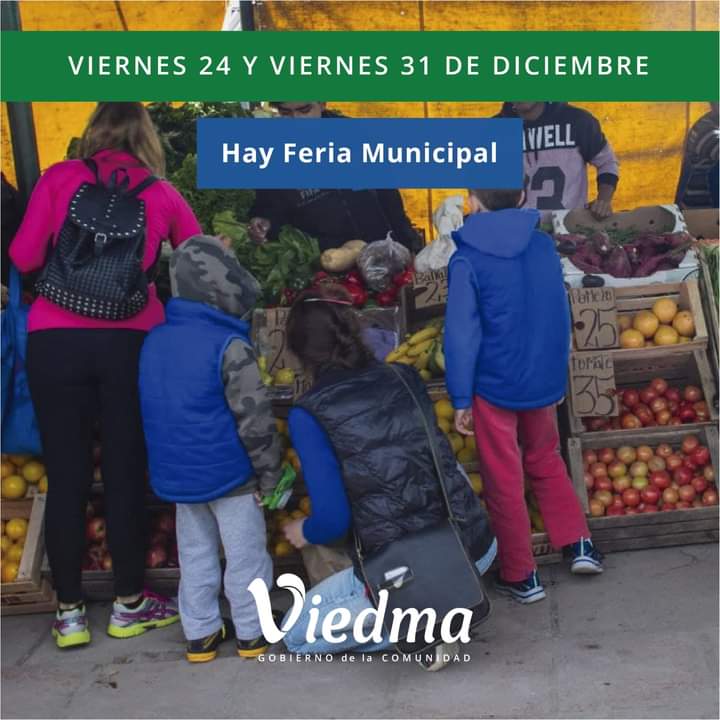 El gobierno de Viedma anunció que los puestos de la Feria Municipal de Viedma abrirán el próximo 24 de diciembre, y también el 31, en vísperas de Año Nuevo.