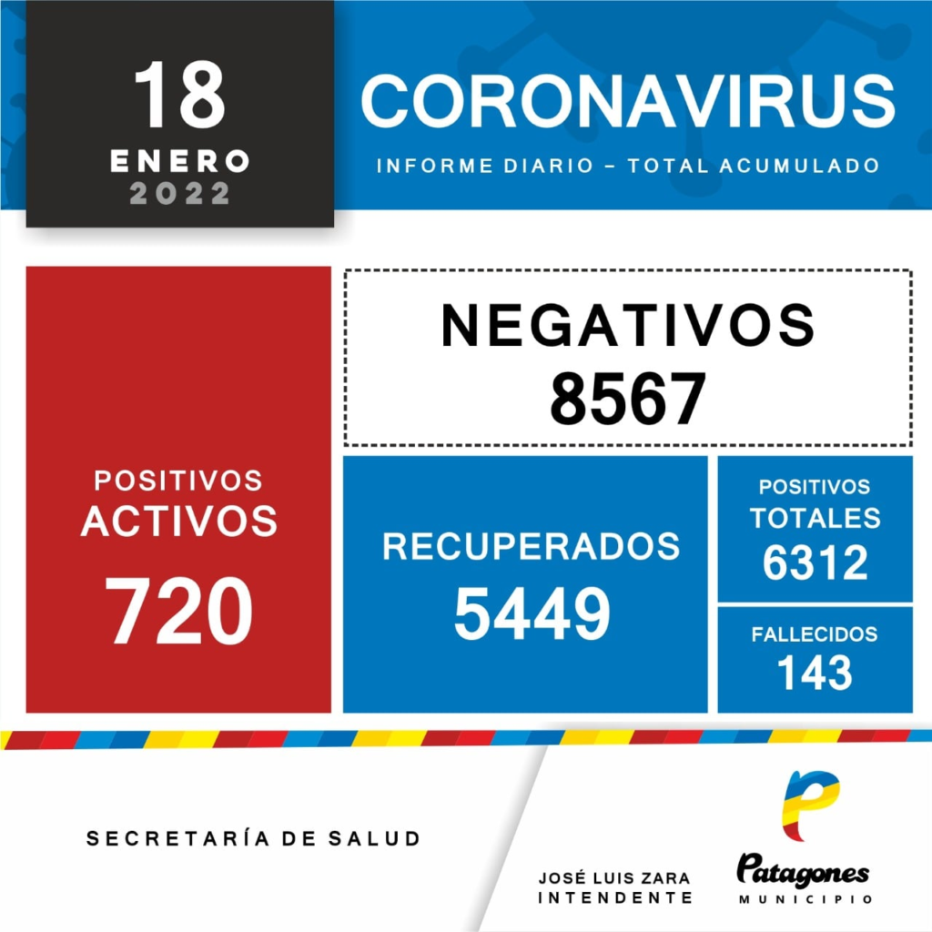 La Secretaría de Salud de Patagones, informó que este lunes se registraron 174 casos positivos de COVID.