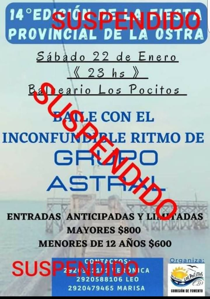 La Comisión de Fomento del balneario Los Pocitos informa a la comunidad que, por razones sanitarias, determinó suspender la Fiesta de la Ostra, programada para el 22 de enero.