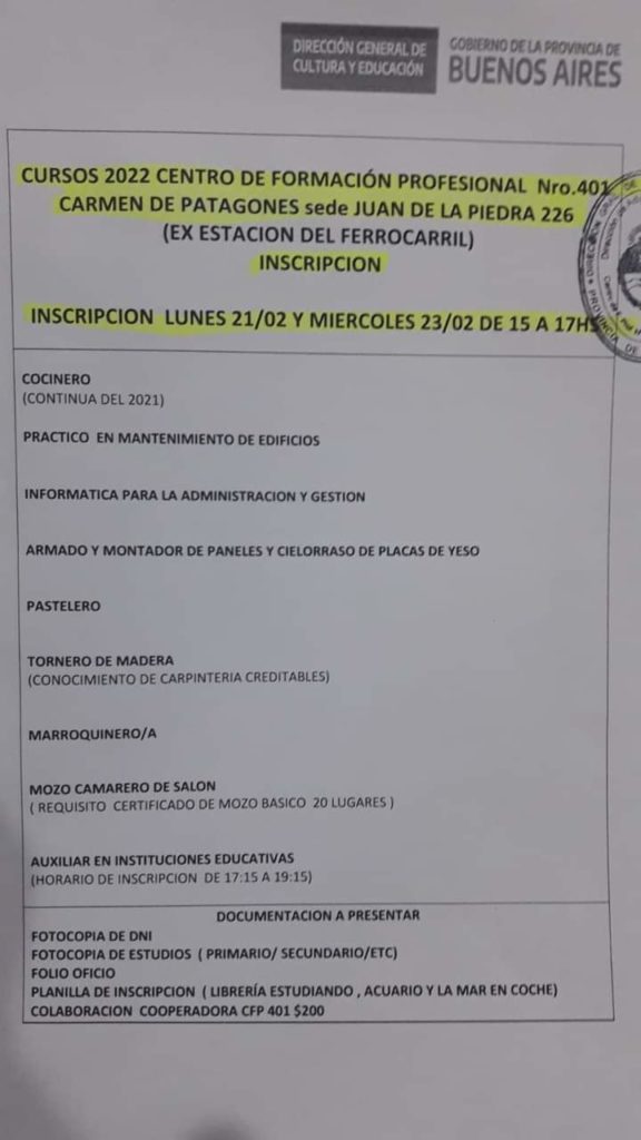 Las personas pueden inscribirse los días martes 22/02 y jueves 24/02 de 15 a 17hs en la sede, ubicado en Juan de la Piedra 226 (ex estación del ferrocarril).