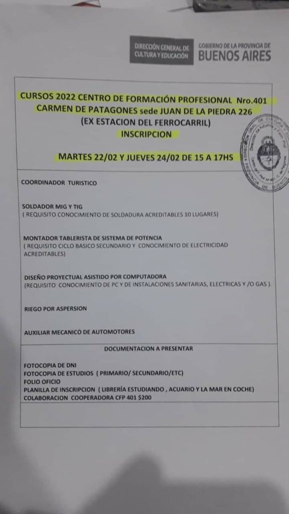Son varios los cursos que comienzan durante este periodo 2022 en el Centro de Formación Profesional 401.