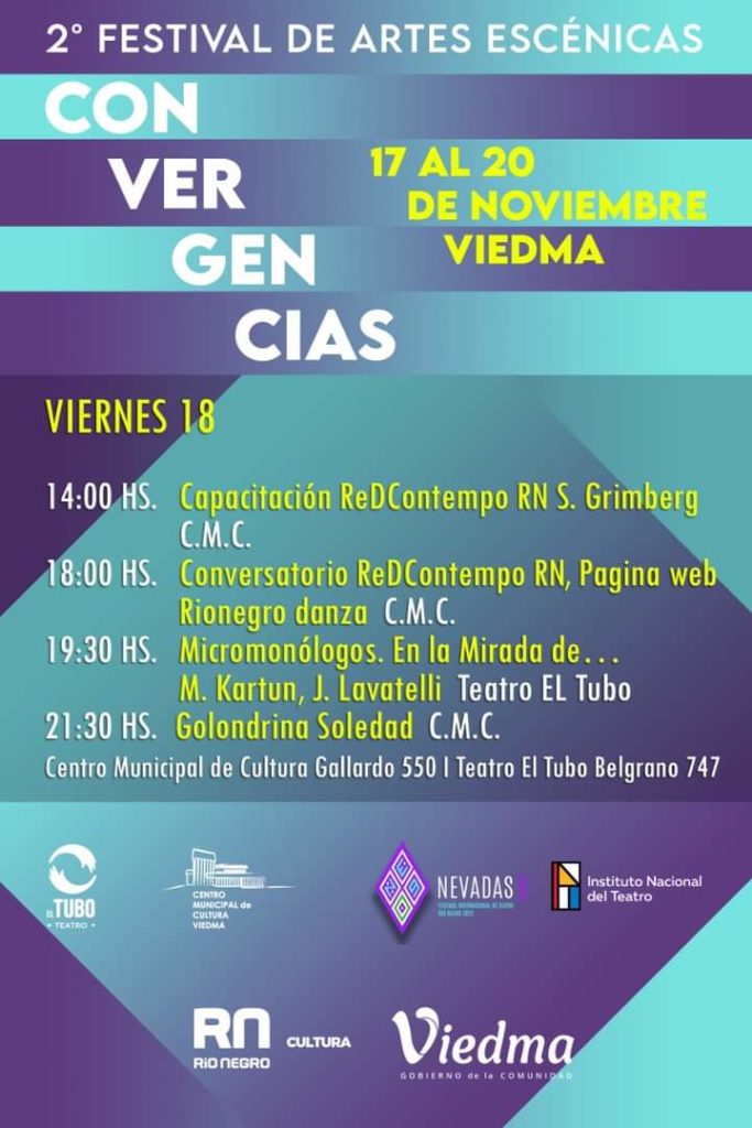 Del jueves 17 al domingo 20 de noviembre se realizará el Festival de Artes Escénicas “Convergencias”, con entrada libre y gratuita en el Centro Municipal de Cultura, el Teatro El Tubo y en la Expo Idevi.