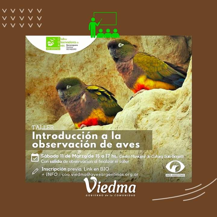 El sábado 11 de marzo de 15 a 17 en la Sala Alcides Bigetti del Centro Cultural el Club de Observadores de Aves (COA) Barranquero de la Comarca Viedma-Patagones llevará adelante el primer taller de Introducción a la Observación de Aves.