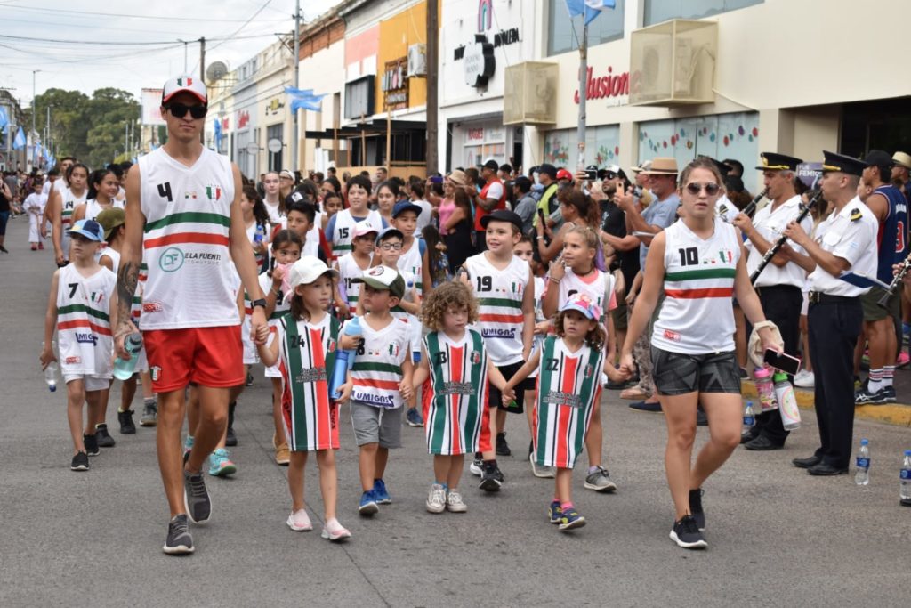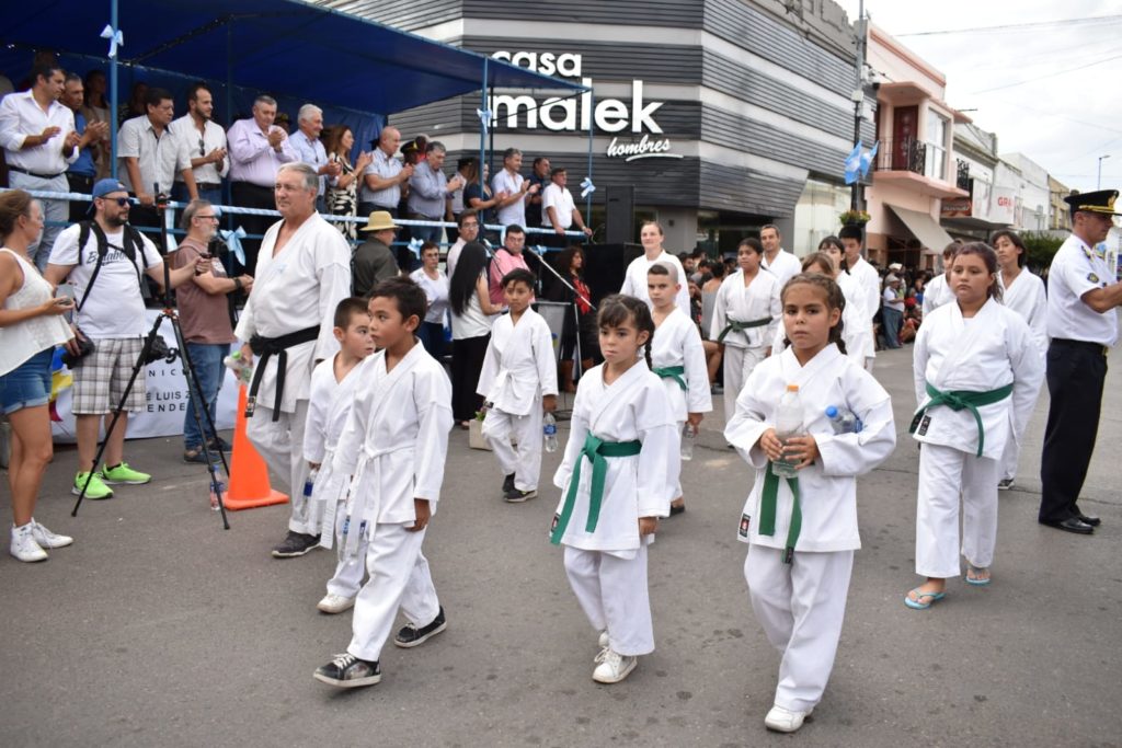 El desfile prosiguió con las distintas instituciones educativas del distrito, las delegaciones de las distintas disciplinas que lleva adelante la Dirección de Deportes con un numeroso grupo de niños y jóvenes que forman parte de las escuelas de fútbol, voley, handball, canotaje, entre otras y los adultos mayores e integrantes de las diversas actividades adaptadas.