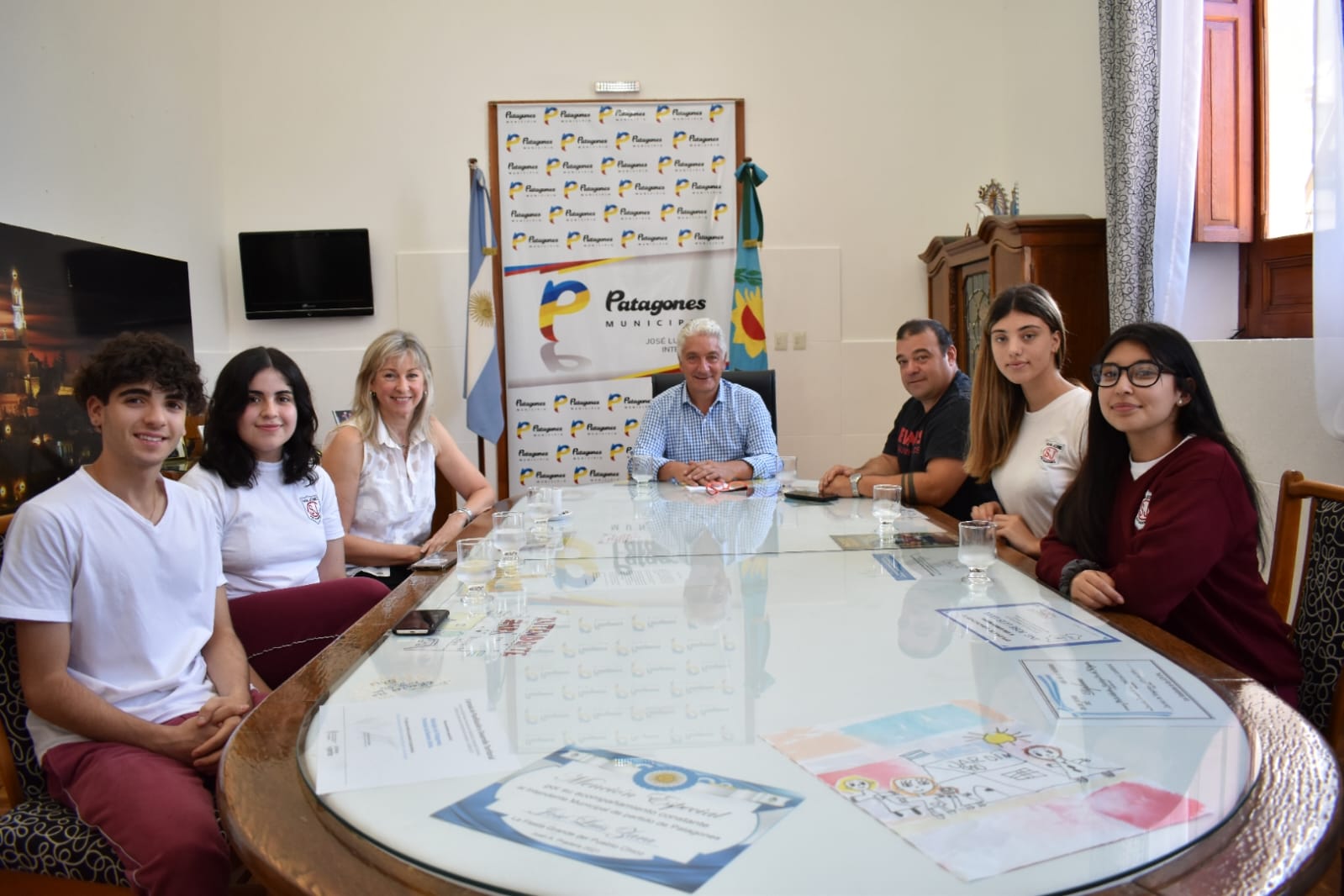 El jefe comunal compartió un ameno momento donde los estudiantes y la docente que los acompaña, Mónica Espeche, brindaron detalles de los preparativos rumbo a Grecia y Taiwan, donde representarán al país.