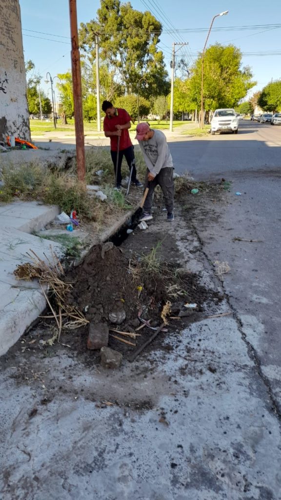 Operarios del área de Servicios se encuentran realizando la limpieza de bocas de tormenta en distintos sectores de la ciudad.