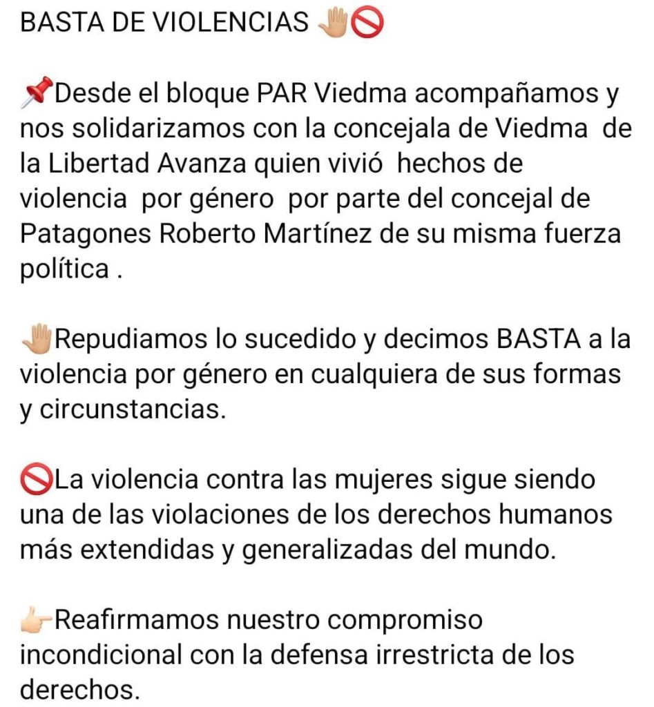 La Concejal libertaria de Viedma Silvina Franco denunció por violencia de género a su par de Carmen de Patagones Roberto Jesus Martinez.