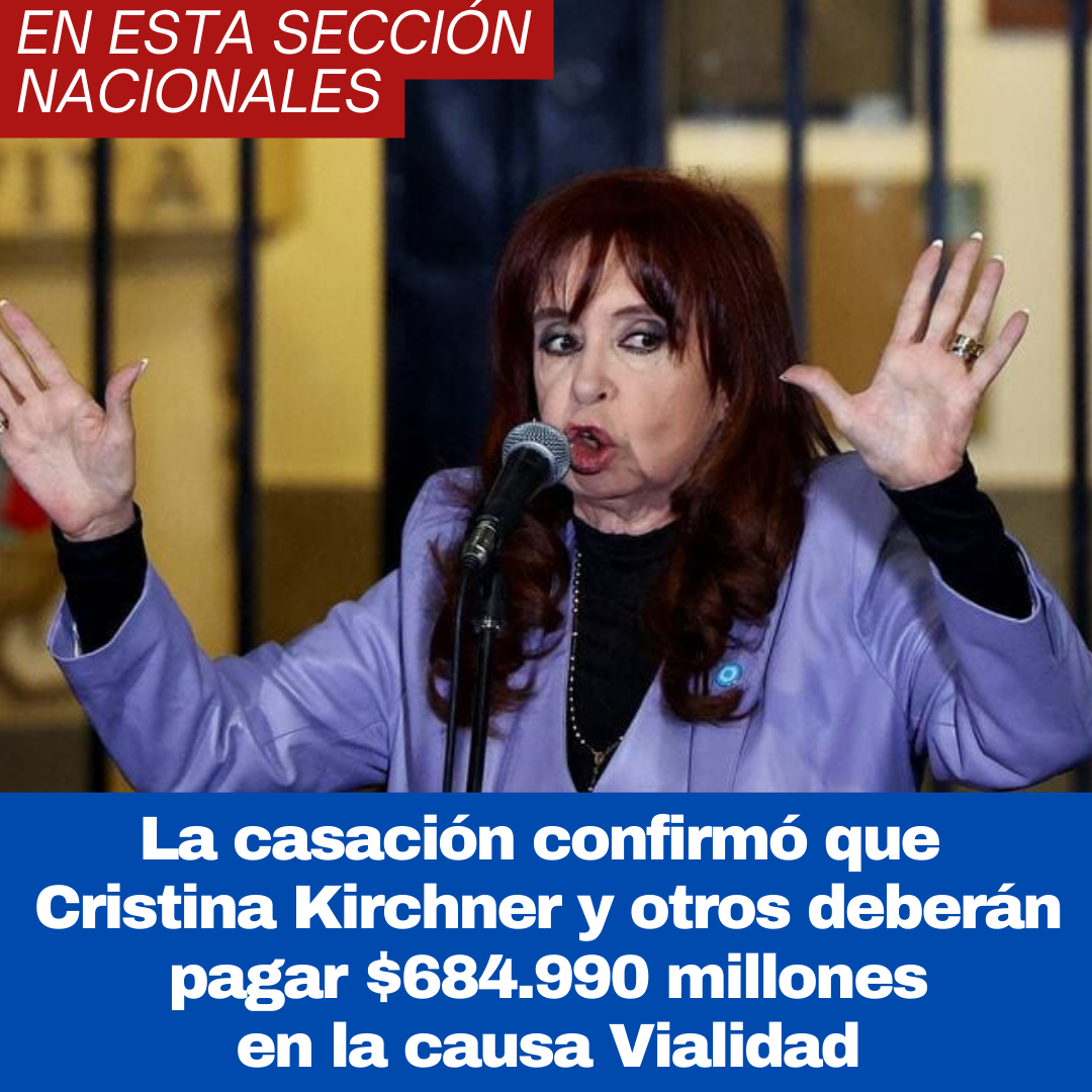 La Cámara Federal de Casación Penal confirmó que Cristina Fernández de Kirchner y los demás condenados en la causa Vialidad deberán pagar, en forma solidaria, un decomiso de $ 684.990 millones.