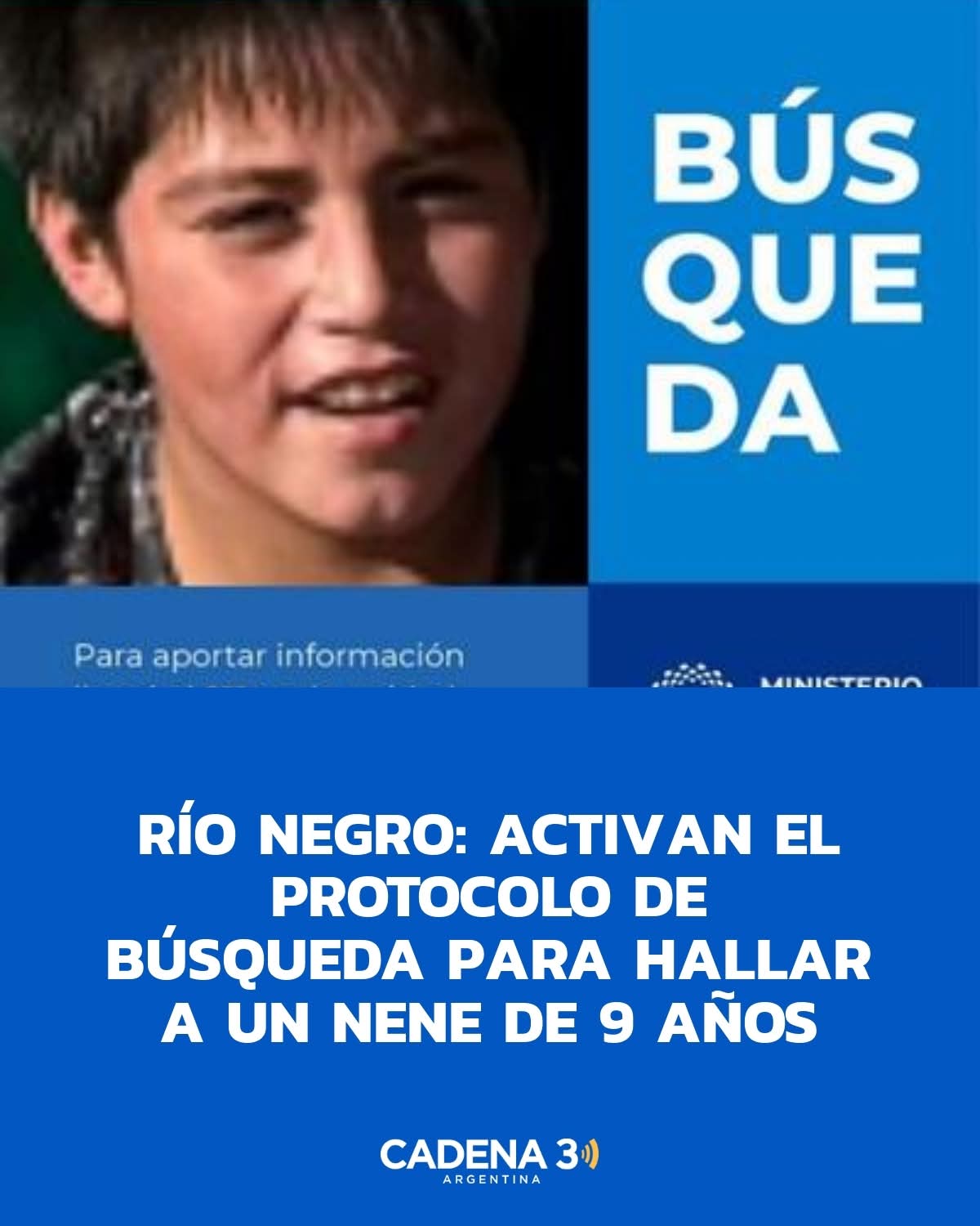Un niño de 9 años se encuentra desaparecido desde el viernes 19 de septiembre luego de ser retirado por su padre de la Escuela El Cailen, en la provincia de Río Negro, y el Ministerio Público Fiscal local activó el protocolo de búsqueda.