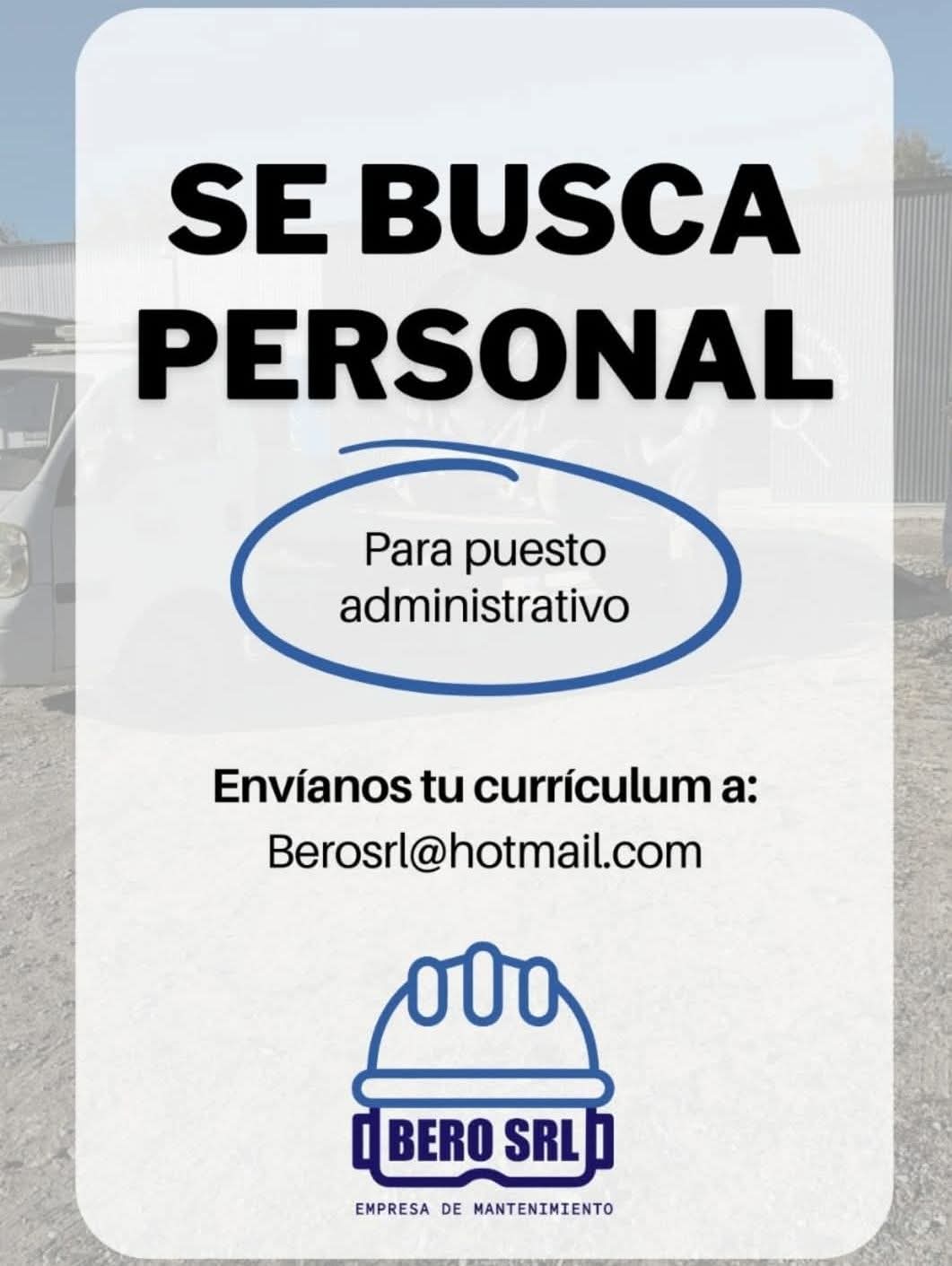 La empresa de Construcción y mantenimiento BERO SRL busca personal para trabajar como administrativo.