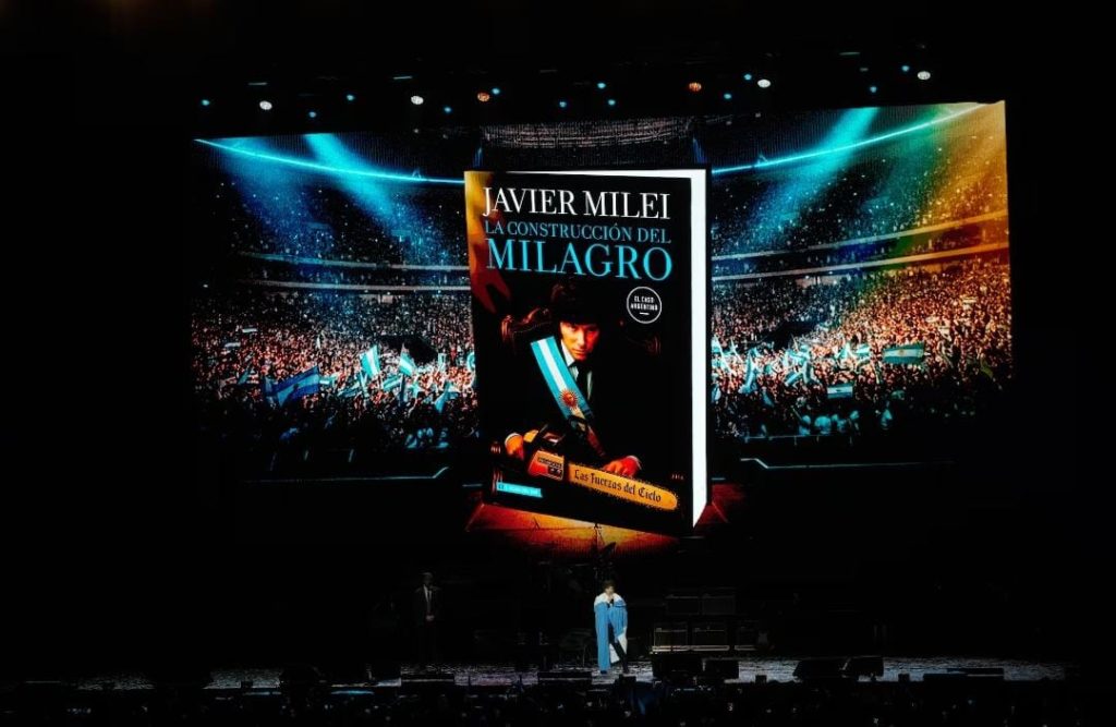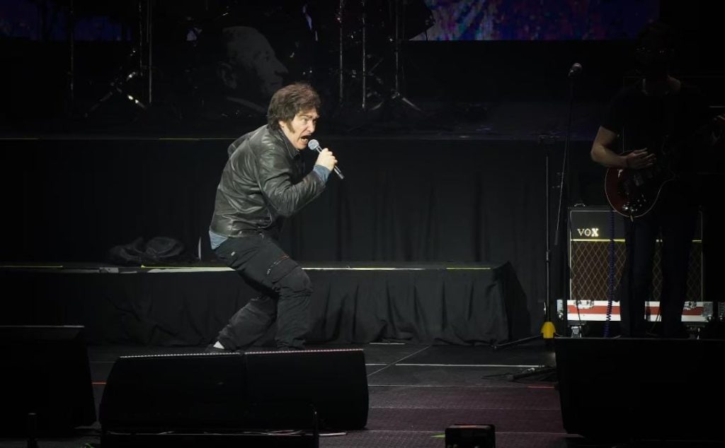 El presidente Javier Milei volvió a protagonizar una jornada histórica en el Movistar Arena, donde miles de militantes de Las Fuerzas del Cielo colmaron por completo el estadio porteño para acompañar el lanzamiento de su nuevo libro «La construcción del milagro». Pero antes de tomar el micrófono para hablar de economía y libertad, el mandatario ofreció un espectáculo musical que desató la euforia del público y reafirmó el vínculo emocional que lo une con su movimiento.