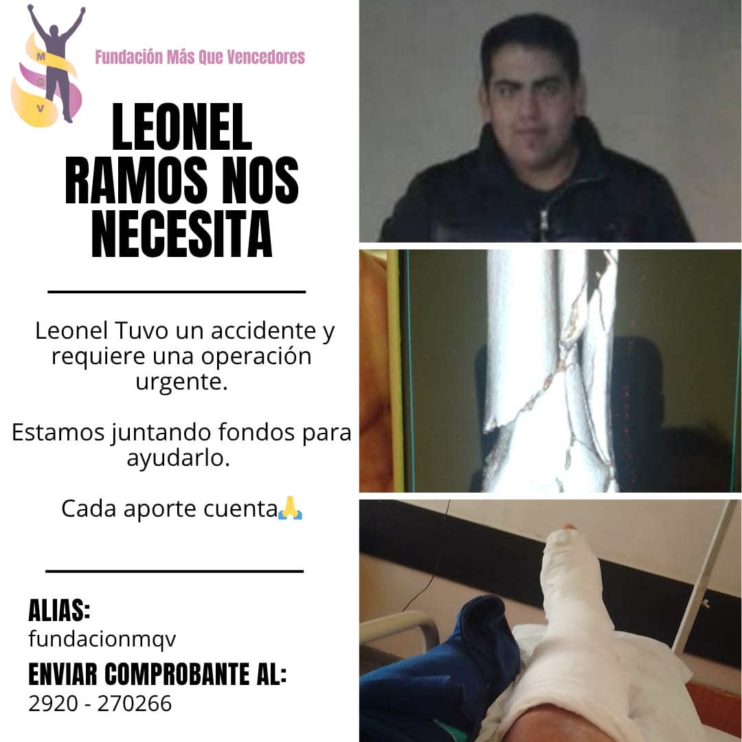 La Fundación Más Que Vencedores lanzó una campaña solidaria para colaborar con Leonel Ramos, un joven que sufrió un accidente y necesita ser operado de urgencia.