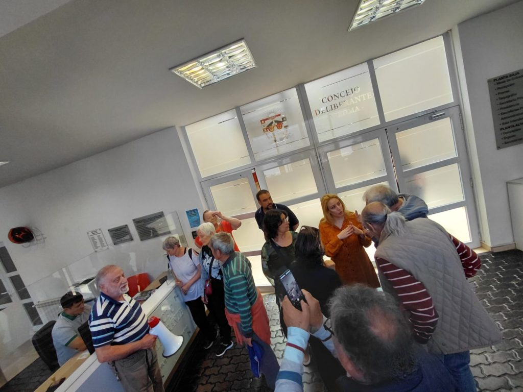 Con un megáfono ingresaron al concejo y llamaron a los concejales para entregar un petitorio.
