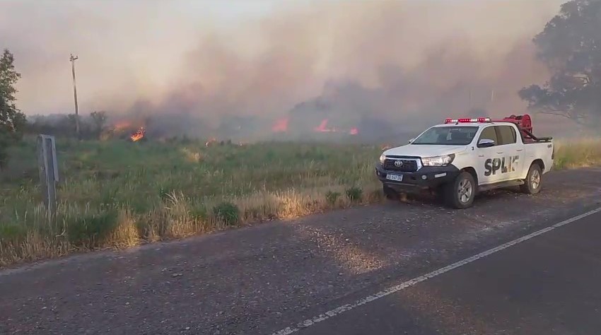 “El incendio empezó en el km 12 y hasta ahora llegó al km 9, pero sigue. Lo que se ve en el video es la entrada al campo nuestro”, expresaron con preocupación.