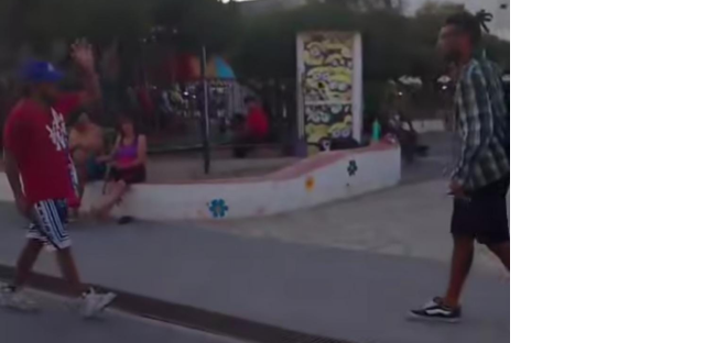 Según expresaron, uno tenía un arma blanca y atacó al otro sin importar la gente que pasaba cerca, hasta que apareció un personal de la policía y se metió en el medio para separar.