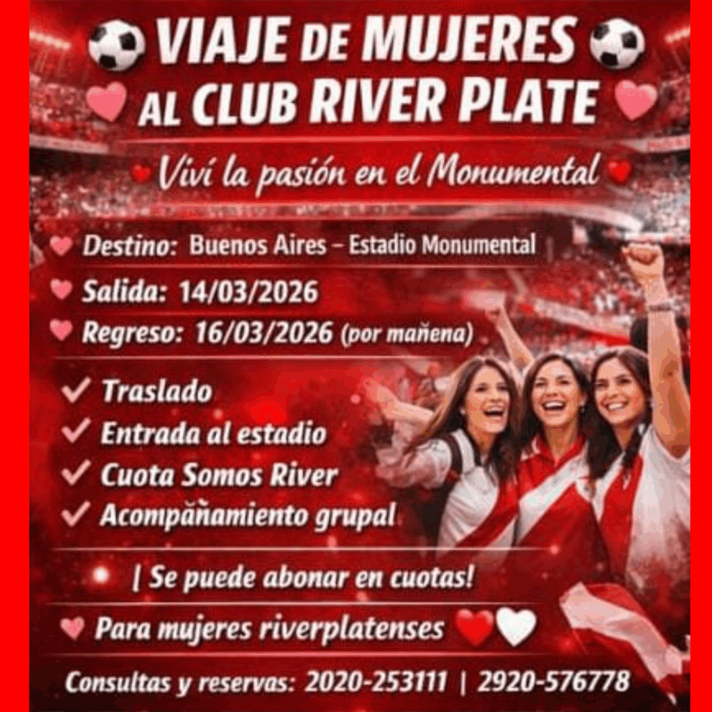 El próximo 15 de marzo, el Estadio Monumental no será solo el escenario de un partido más de la Liga Profesional. Para las fanáticas de River de la zona atlántica, será el marco de una jornada histórica: el primer viaje organizado exclusivamente para mujeres que buscan alentar al «Millonario» en Núñez.