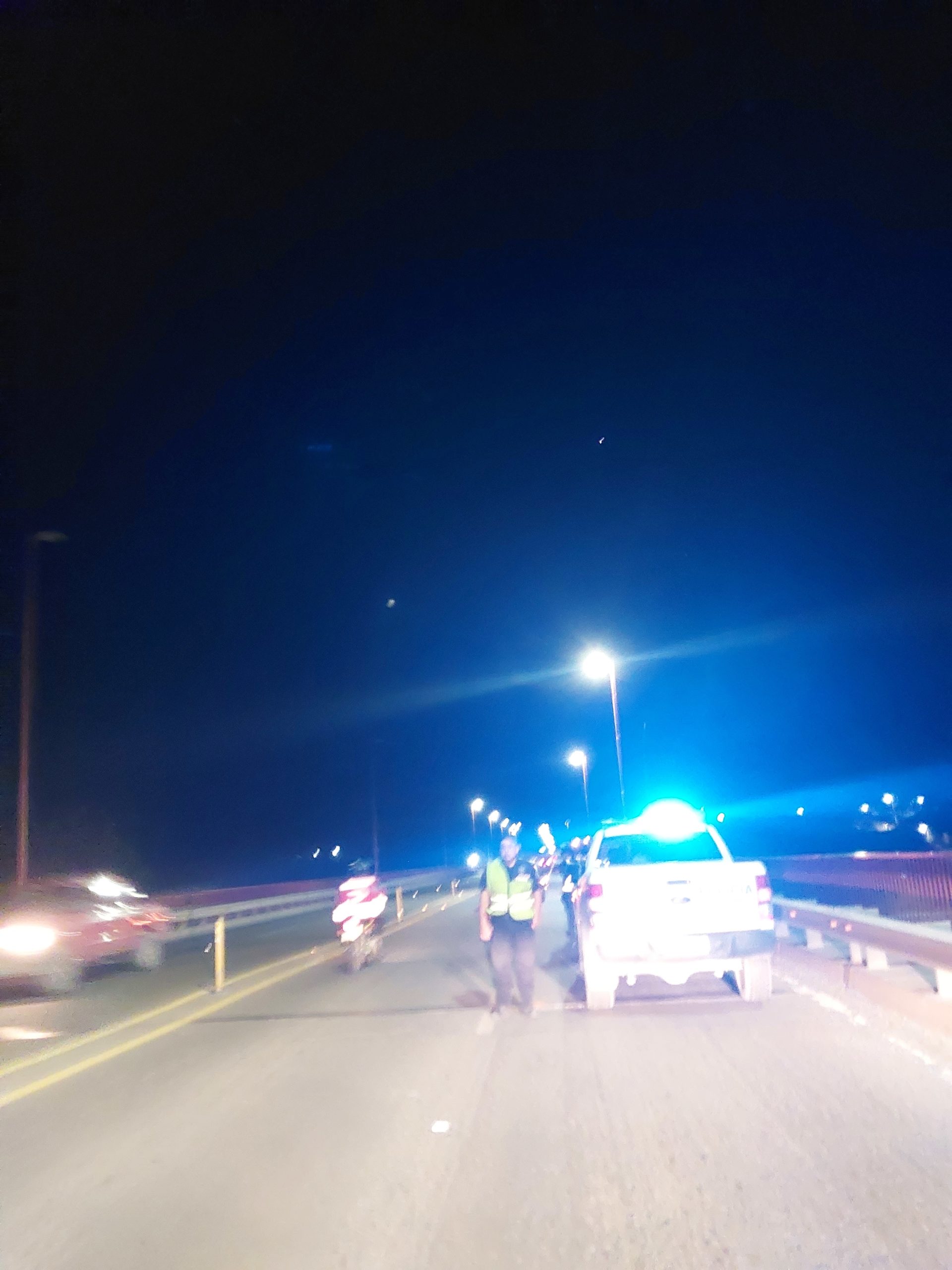 Una persona que circulaba en su motocicleta fue retenido por la policia cerca de las 23 horas en el puente Basilio Villarino.