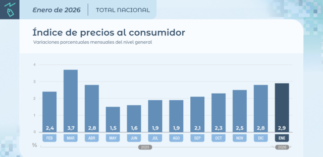El Instituto Nacional de Estadística y Censos (INDEC) informó este martes que el Índice de Precios al Consumidor (IPC) registró una suba del 2,9% en enero de 2026. El dato marca una leve aceleración respecto al 2,8% de diciembre y consolida una tendencia alcista que ya suma siete meses consecutivos, situándose como el registro mensual más elevado desde marzo de 2025.