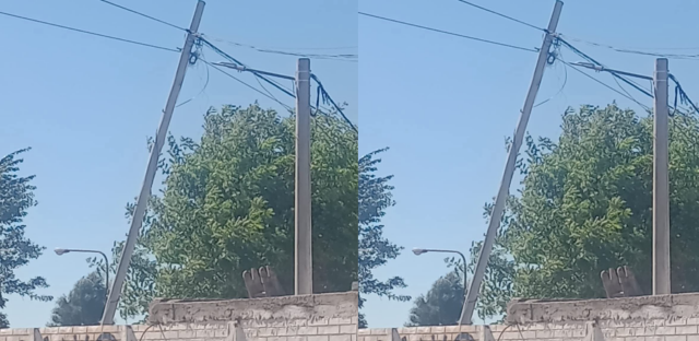 Lamentablemente otra vez los vecinos deben alzar la voz ante una demanda insatisfecha. Un poste de madera está a punto de caerse poniendo en peligro a cualquier persona que transite por la zona sumando a los eventuales problemas con el tendido eléctrico.