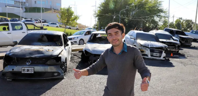 La víctima del siniestro es Matías Fernández, un joven vendedor de autos de 24 años que opera bajo la firma Exclusive Cars. Según relató el propio damnificado, utilizaba el espacio público frente a la Legislatura para exhibir sus vehículos mientras finaliza las obras en su nueva sucursal.