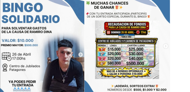 La comunidad de la Comarca se moviliza una vez más en busca de justicia. Bajo el lema de la unión y el apoyo mutuo, se anunció la realización de un Bingo Solidario con el objetivo de recaudar fondos para la causa judicial de Ramiro Dina. El evento busca cubrir costos fundamentales del proceso, específicamente la contratación de peritos de parte, piezas clave para que la investigación avance con firmeza.