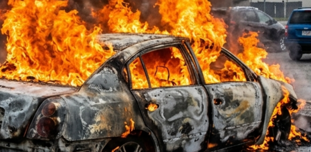 En una madrugada que Matías Fernández difícilmente olvidará, el silencio de la capital neuquina se rompió con una fuerte explosión. Al asomarse por la ventana, el panorama era desolador: varios de los vehículos de su concesionaria, estacionados temporalmente frente a la Legislatura de Neuquén, estaban envueltos en llamas.